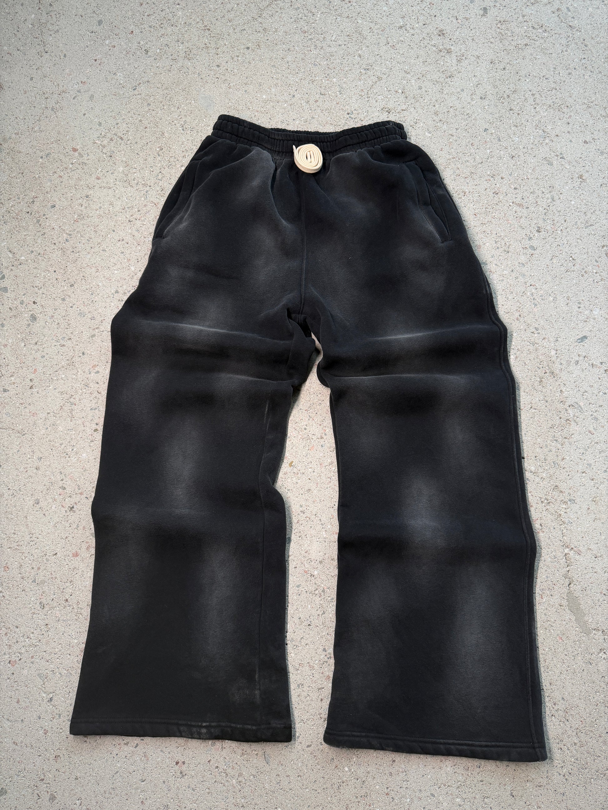 Loose, slightly flared sweatpants with an elastic waistband, inner drawstring, and side pockets. Acid washed.